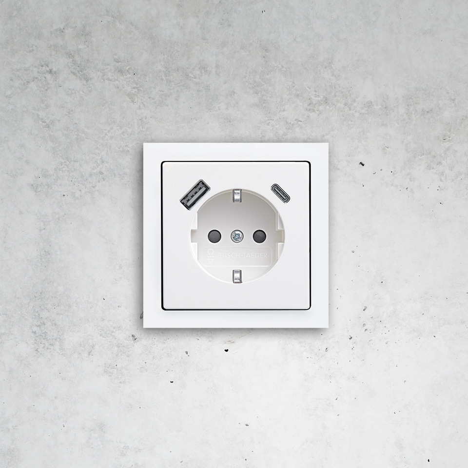 Die Kombination aus bewährter SCHUKO®-Steckdose und modernem USB-Netzteil sorgt zudem für ein einheitliches Design. Denn sie ist für zahlreiche Busch-Jaeger Schalterprogramme wie carat®, pur edelstahl, solo®, Busch-axcent®, alpha, future® linear und Reflex SI/SI Linear erhältlich – in allen aktuellen Farben der jeweiligen Programme.